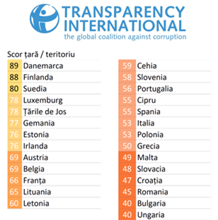 - Indicele de Percepție a Corupției măsoară nivelul corupției din sectorul public